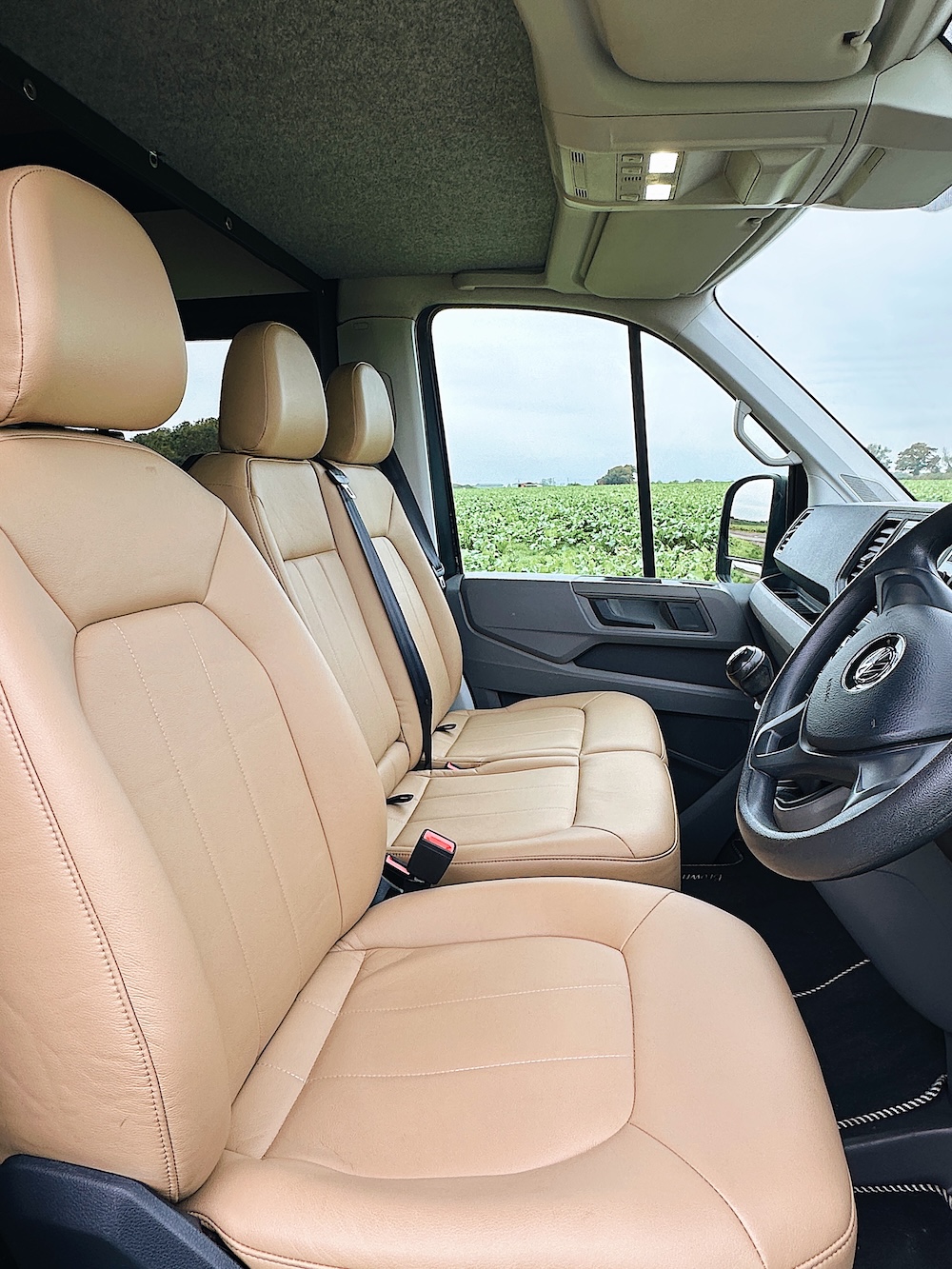 Beautiful light camel coloured sofa that can be converted into a third berth and a pet den.